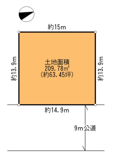 ・接道:東側約9m道路に間口約14.9m接道