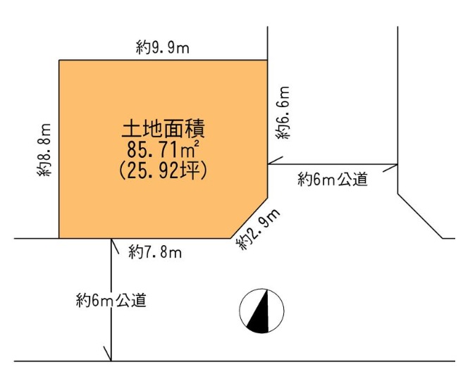 ・接道:南側約6m公道、東側約6m公道