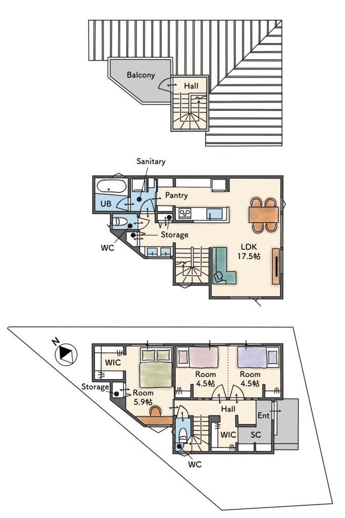 ◆土地面積:約28.1坪 建物面積:約28.1坪 ◆スカイバルコニー付き3LDK