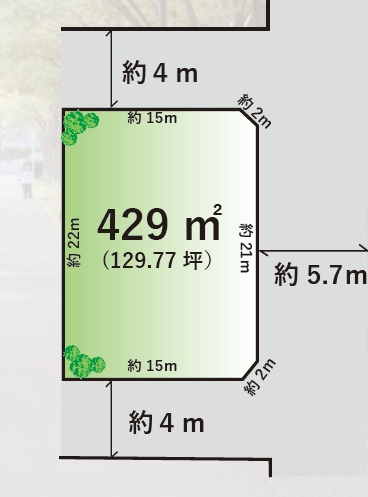 ◆土地面積:約129坪 三方向の角地で陽当たり良好